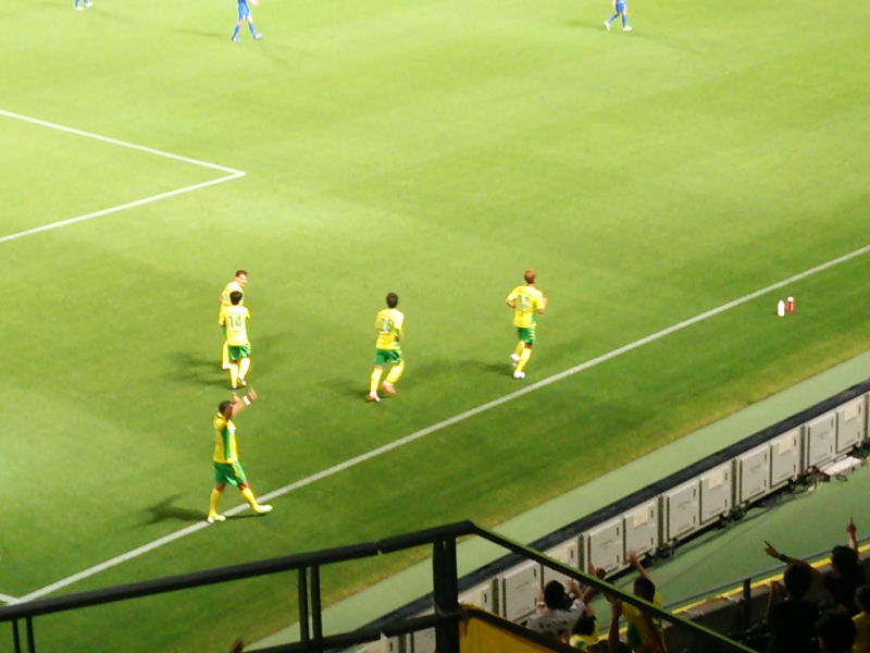 この後は、さらに福岡に押される展開となり、FK、CKから危ない場面もあったがしのぎ切る。