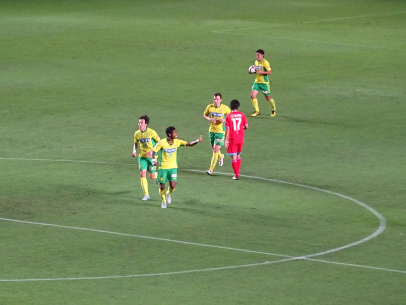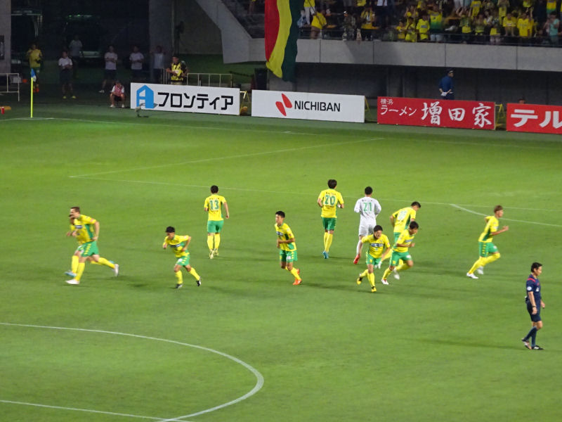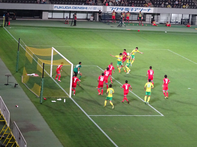 後半21分、金井のクロスに阿道が頭で合わせるがバーの上をこえる。さらに、後半22分、ジェフのFKも、はねかえされてしまう。