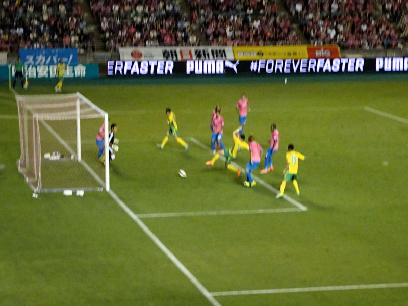 ここから、セレッソが連続してシュートチャンスをむかえるが、ジェフがなんとかしのぎ続ける。セレッソはCKのチャンスも含めて、攻勢にでるが得点は奪えず。