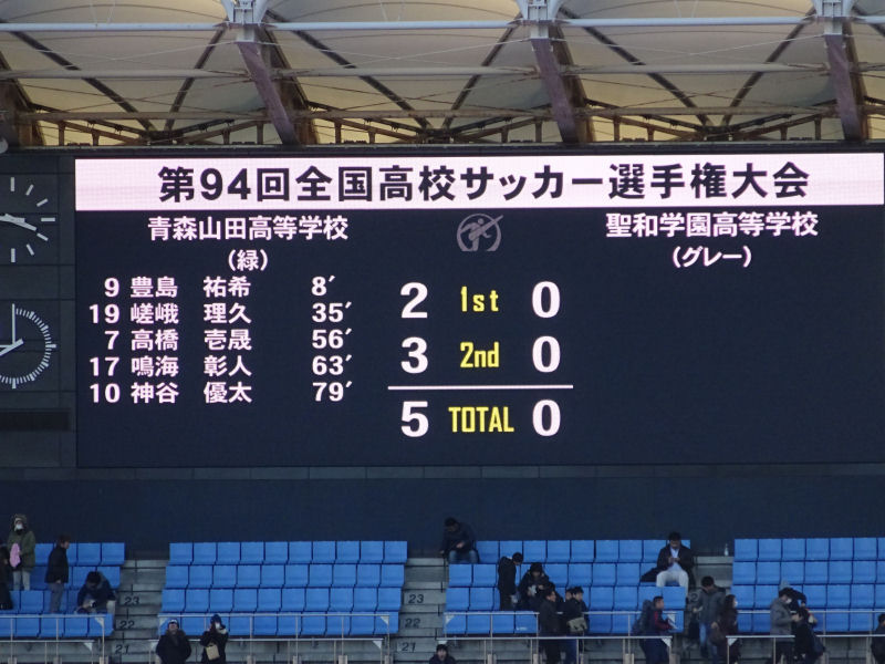 試合は、このまま終了。青森山田が5-0で圧勝しました。