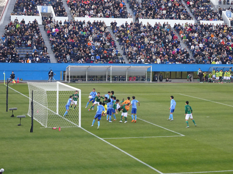 第97回高校サッカー選手権の等々力競技場まで、青森山田高校vs大津高校の試合を観戦してきました。試合は、青森山田がFKから先制。その後1点を追加して、後半にも追加点をあげて3-0で勝利しました。 -