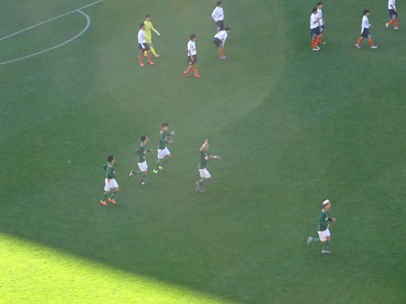 前半15分、青森山田は、ロングスローは、はねかえされる。前半16分、再度のロングスロー。頭で落としたところを鳴海が押し込んで青森山田が先制する。