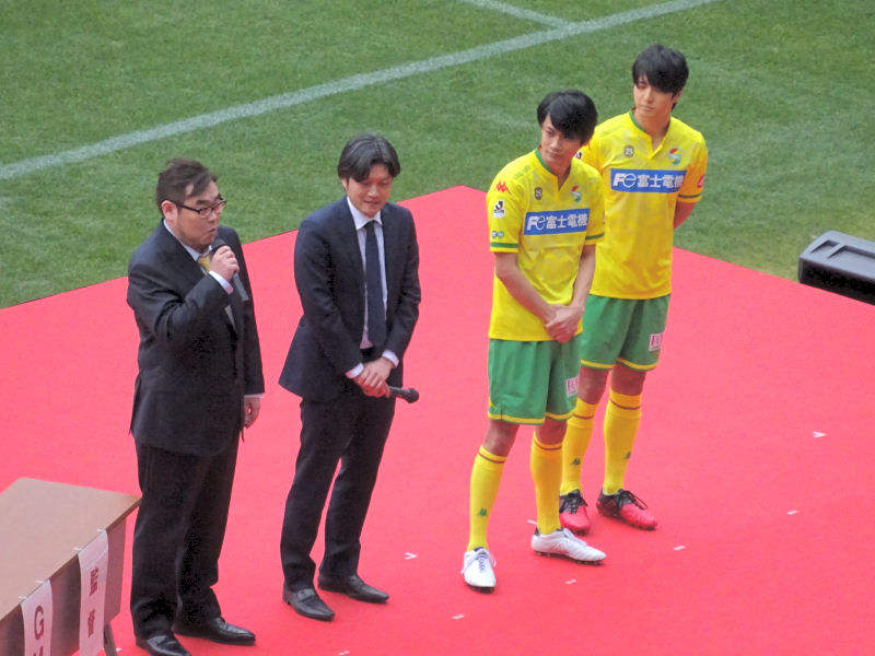 まずは、前田新社長、関塚監督、高橋GMが登場しました。前田社長は、社長というよりかは、営業部長的な雰囲気ですね。社長就任1年目でガラッとチームが変わることになりますが、いい印象を残せればいいですね。