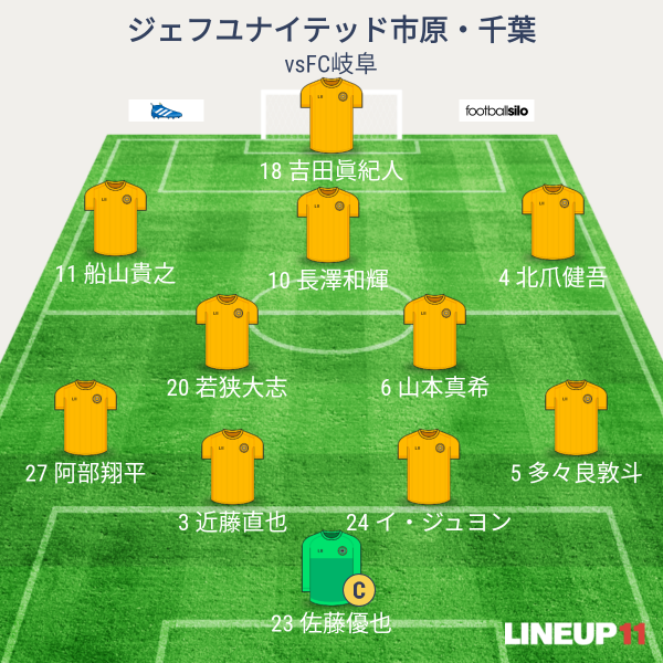 ジェフの先発は、GKに優也、CBに近藤とイ、右SBに多々良、左SBに阿部、ボランチに山本と長澤、右SHに船山、左SHに井出、トップ下に町田、1トップにエウトンという布陣でした。