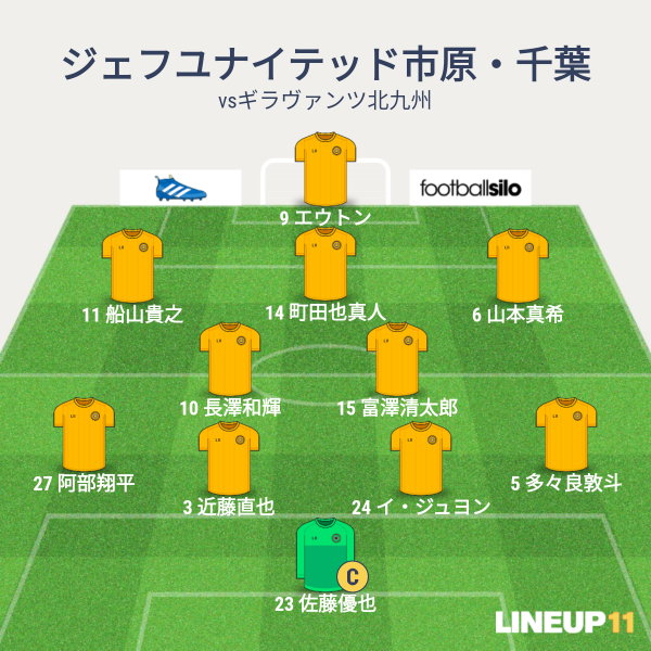 ジェフの先発は、GKに優也、CBに近藤とジュヨン、右SBに多々良、左SBに阿部、ボランチに富澤と長澤、右SHに山本、左SHに船山、トップ下に町田、1トップにエウトンという布陣でした。