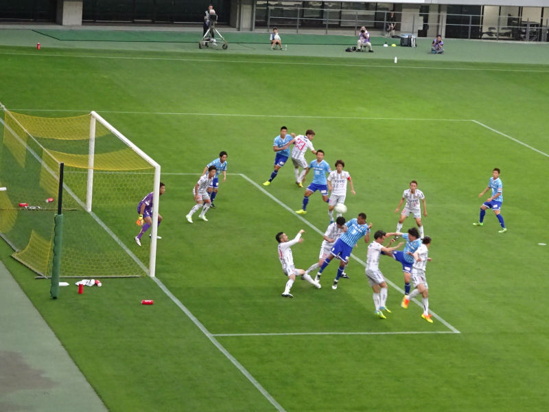 前半21分、ジェフのCK。北九州が跳ね返しきれず。大久保が蹴りこむが上に浮いてしまう。これは、クリアされる。