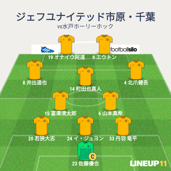 ジェフの先発は、GKに優也、CBに若狭とジュヨン、右SBに丹羽、左SBに阿部、ボランチに富澤と長澤、右SHに井出、左SHに船山、トップ下に町田、1トップにエウトンという布陣でした。