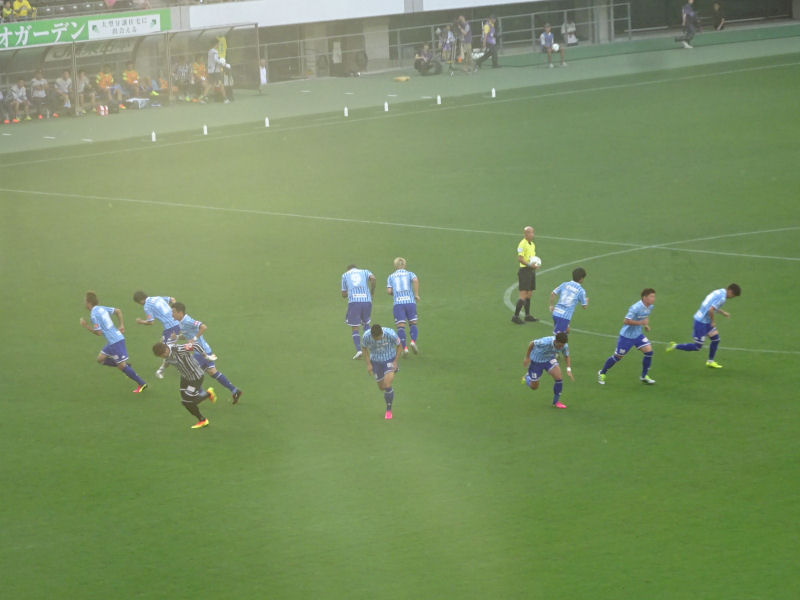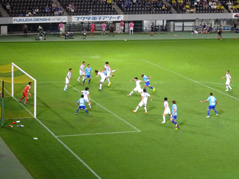 後半39分、山本が左からクロスを入れるが、クリアされる。後半40分、ジェフのCK。阿道が競るが、こぼれたボールはクリアされる。