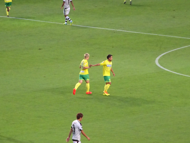 前半3分、右サイドを駆け上がった北爪から逆サイドの船山へボールを送るが、これはオフサイドとなる。
