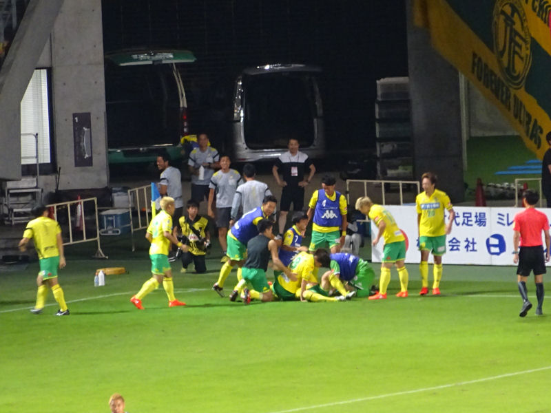 後半に入ると、完全にジェフペースとなりました。ほぼ、一方的にジェフが攻め立てる時間が続きました。同点ゴールは、北爪が右サイドから粘って折り返したところからでした。井出のシュートは当たりそこねとなりましたが、GKがお腹で受ける形となってしまいました。これを船山が奪って落ち着いてゴールを奪いました。