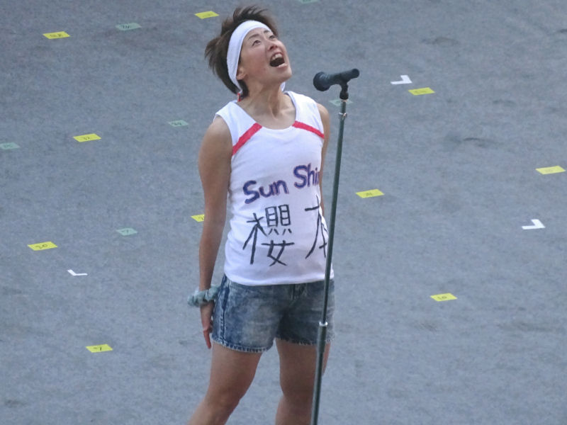 櫻本キャプテンは、寒空のもとタンクトップ、短パンでのパフォーマンス。