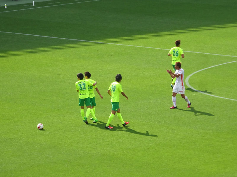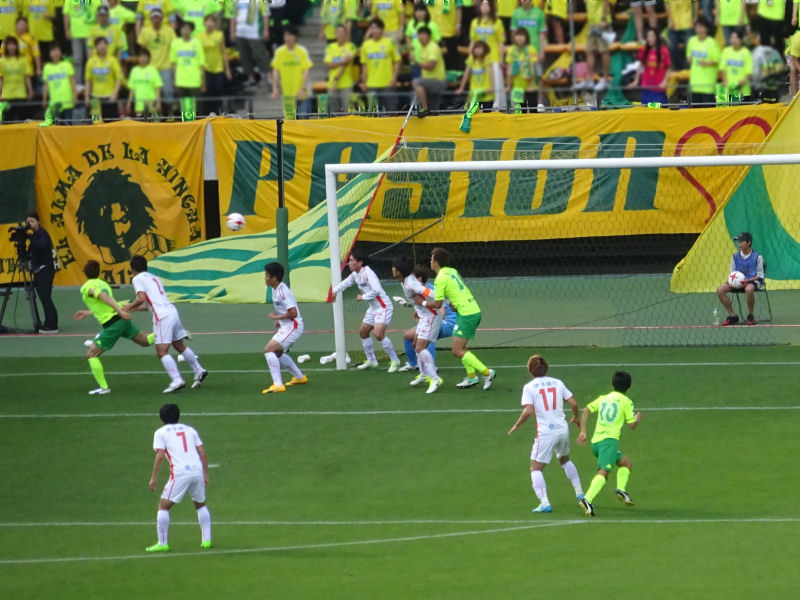 失点して、少しバタバタしたジェフだったが、前半17分にはCKのチャンス。これは愛媛DFに跳ね返される。
