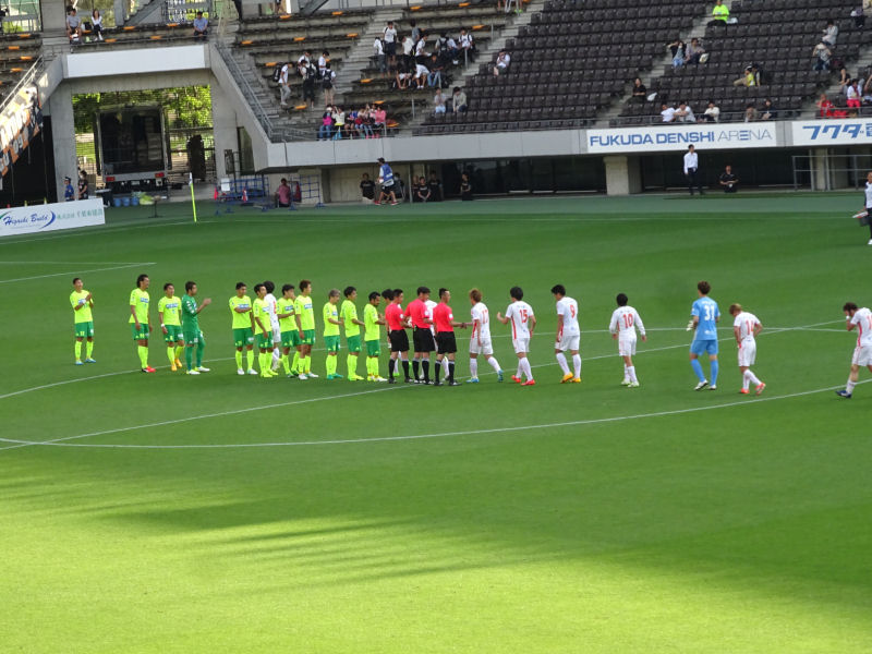 ジェフの先発は、GKに優也、CBに近藤、岡野、ボムヨン、、アンカーに勇人、ISHに町田と壱晟、右WBに真希、左WBに乾、2トップに指宿、清武という布陣でした。アンカーに勇人を起用。乾が今季初先発となりました。