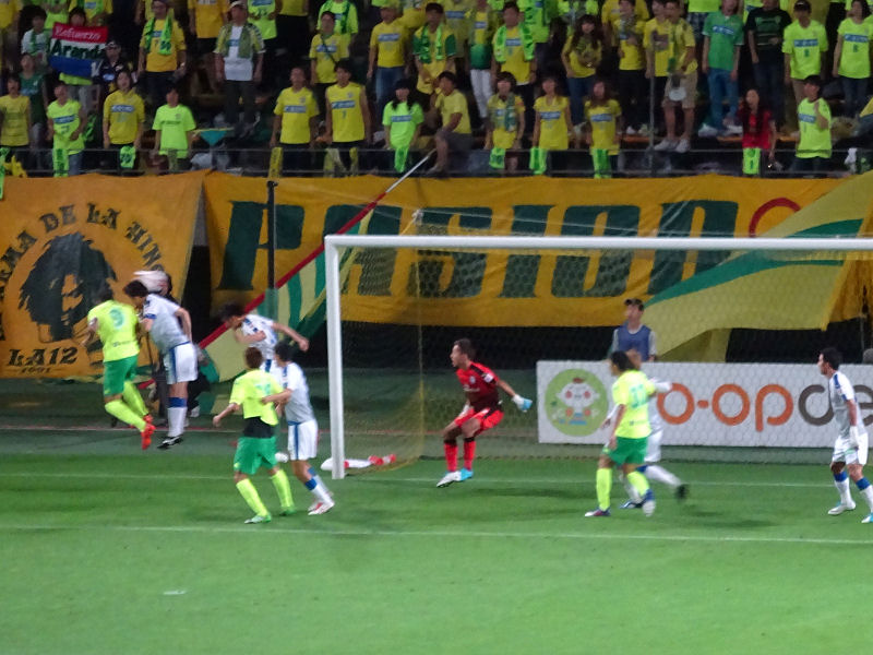 さらに攻め続けるジェフ。前半21分、壱晟がカットインからシュートもブロックされます。前半22分、清武がクロスをあげるがこれは、はねかえされます。前半23分には、壱晟が右サイドからのクロスに、乾が飛び込むがわずかにさわれず。