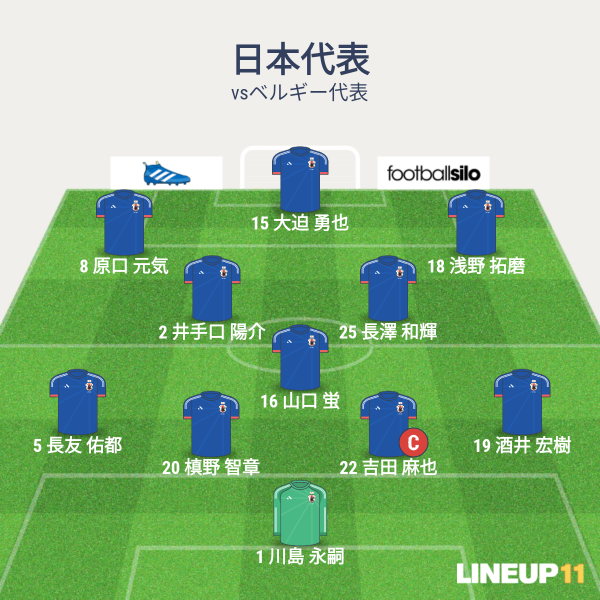 日本の先発は、GKに川島、CBに吉田と槙野、右SBに酒井宏、左SBに長友、アンカーに山口蛍、ISHに長澤と井手口、右SHに浅野、左SHに原口、1トップに大迫という布陣でした。長澤が日本代表初出場となりました。浅野が先発で起用されています。