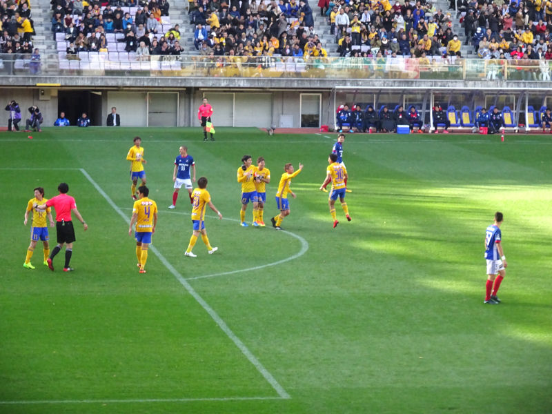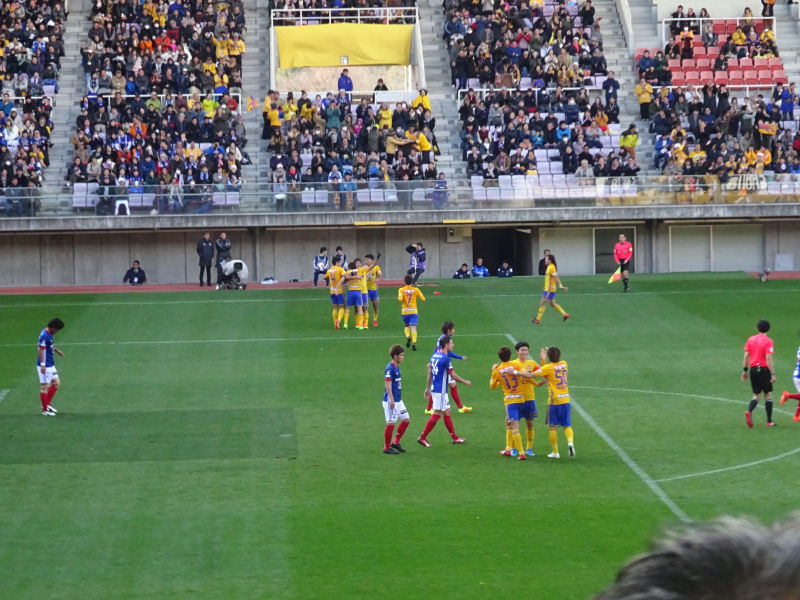 前半28分のFK。平岡が頭で折り返したボールに石原が素早く反応してゴール。仙台が逆転に成功します。