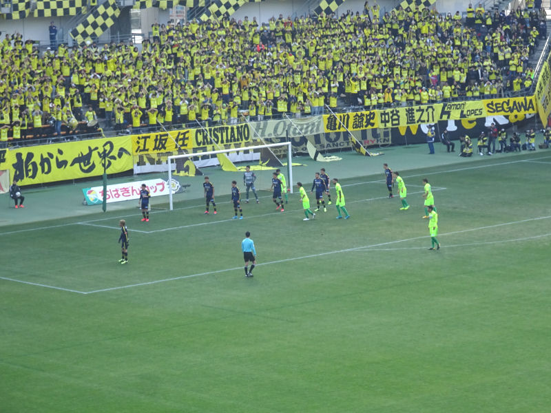 その後は、一進一退の攻防になる。前半ATに柏のFK。クリスティアーノが直接狙うが左に外れます。
