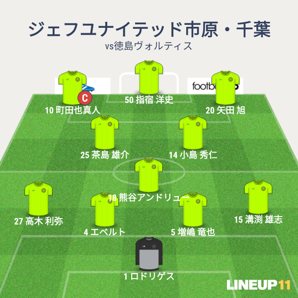 ジェフの先発メンバーは、GKにロドリゲス、CBに増嶋とエベルト、右SBに溝渕、左SBに高木、アンカーに熊谷、ISHに矢田と小島、右SHに茶島、左SHに町田、トップに指宿という布陣でした。溝渕、小島、指宿が今期初先発となりました。連戦という事もあってか、ラリベイはベンチスタート、清武はベンチ外となっています。