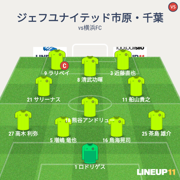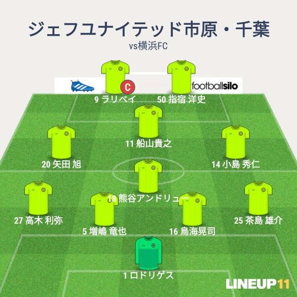 ジェフの先発メンバーは、GKにロドリゲス、CBに増嶋と鳥海、右SBに茶島、左SBに高木、ボランチに熊谷、CMFに矢田の小島、トップ下に船山、2トップにラリベイと指宿という布陣でした。中盤はダイヤモンドの4バック。久しぶりにラリベイと指宿が揃っての先発となりました。近藤はベンチスタートです。