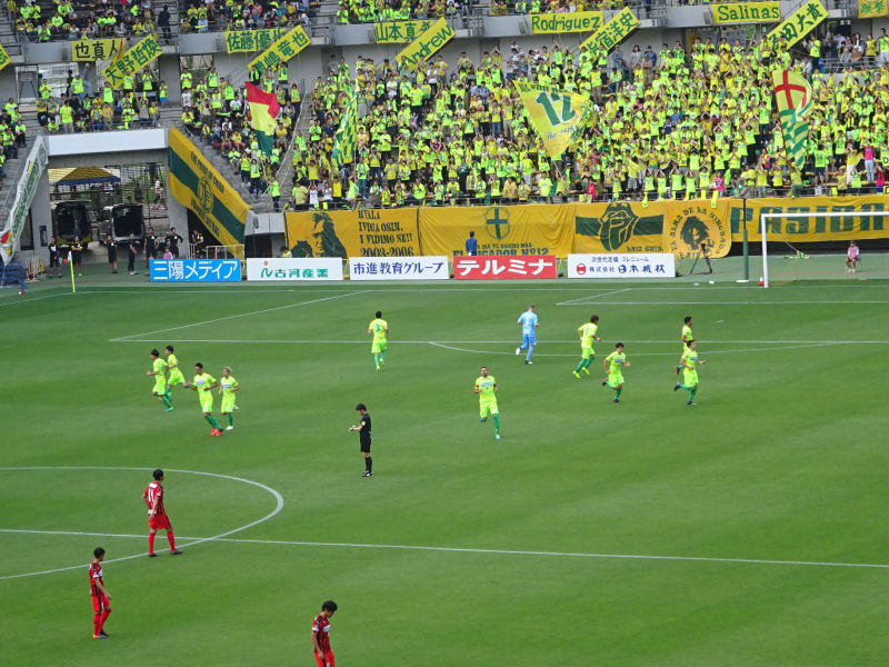 リードしてからはジェフがボールを繋ぎながらチャンスを伺う展開となりました。もう少し、前にボールを運びたかったんでしょうが、リードしている状況で無理をする必要もなく。熊本のプレッシャーも中途半端だった事で、寄せられても簡単にボールを繋ぐ事ができました。怖かったのは、サイドからのボールに巻が飛び込んだ場面くらいでしょうか。