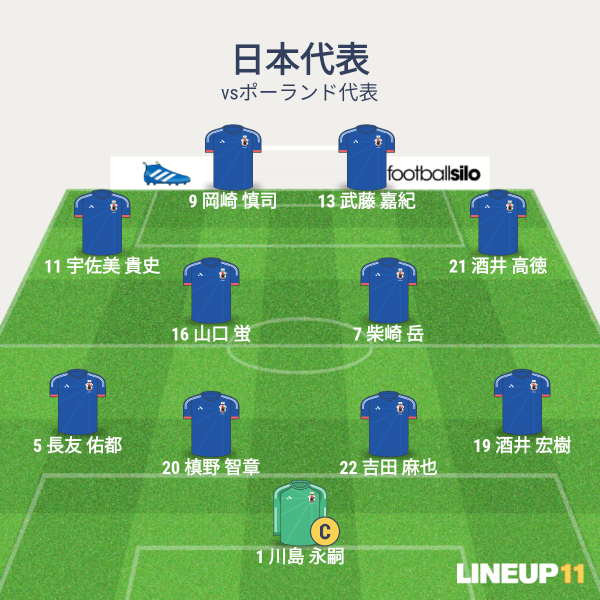 対する、ポーランドも5人を入れ替えて4バックに。両SBをあげて攻撃的にきていたものの、こちらも運動量が多くなく、日本としてはロングボールに注意をはらえばいいという状況でした。