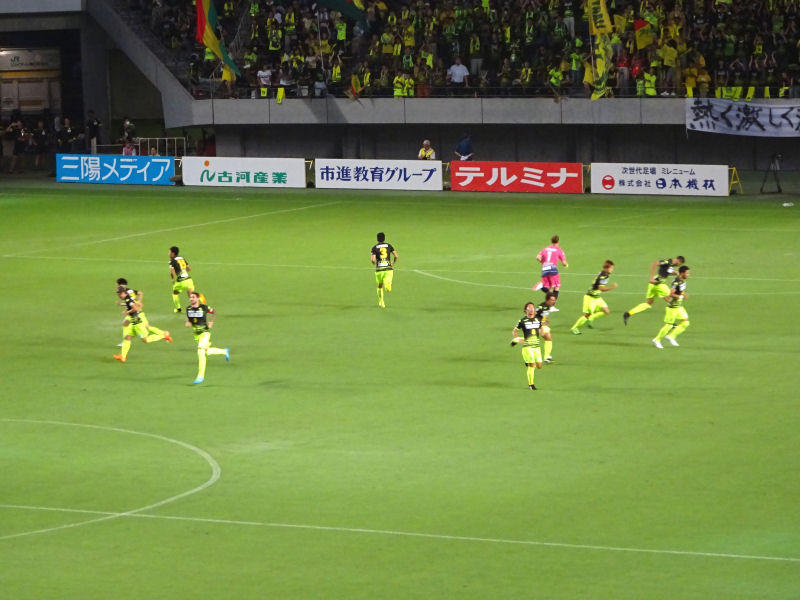 甲府が攻め込む時間が多くなるが、ジェフが懸命に守り切る。5分あったATも、相手にチャンスを与えず。試合は、2-1でジェフが勝利した。