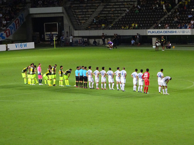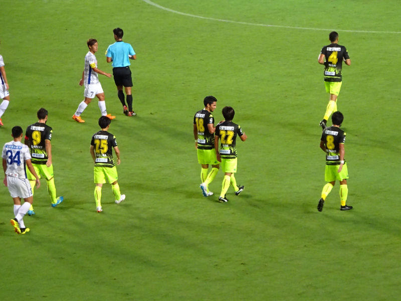 前半18分、工藤がボールを奪われてシュートに持ち込まれるが右に外れて助かる。前半21分、清武がボールを奪われかけるがこぼれたボールを拾った乾がドリブルで仕掛けて折り返す。ラリベイが受けて戻したボールを茶島がシュート。ニアサイドを抜けてゴールに吸い込まれる。ジェフが同点に追いつく。