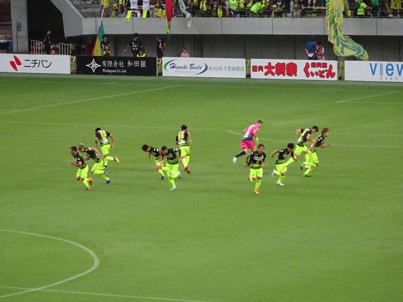 前半36分、船山のミドルシュートは左に外れる。さらに、前半40分、溝渕が右からクロスをいれるとブロックした選手の手に当たってハンドのなりPKの判定。このPKを船山が落ち着いて決めてジェフが先生する。