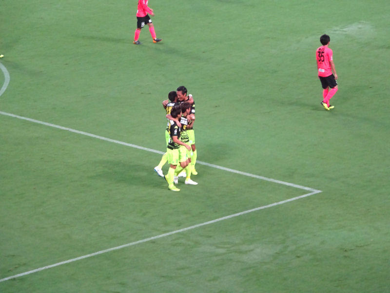 ジェフの先制点は、指宿が競り勝ったボールを相手がクリアしきれずに下平のところに落ちてきました。まあ、あれはよく枠に入れたなというゴールですね。