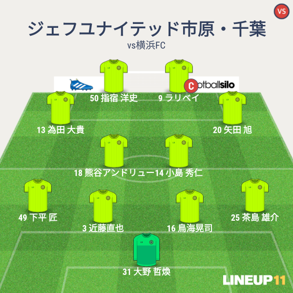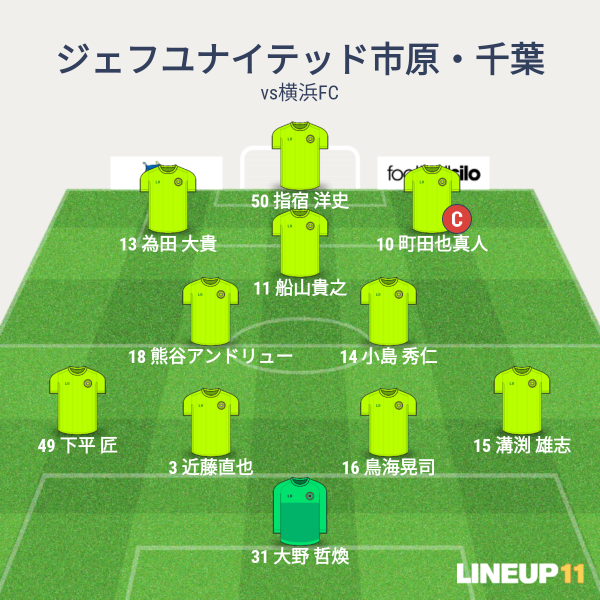 ジェフの先発メンバーは、GK大野、CBに近藤と鳥海、右SBに溝渕、左SBに下平、ボランチに小島と熊谷、右SHに町田、左SHに為田、トップ下に船山、トップに指宿という布陣です。矢田と為田が変わった以外は先発は同じとなりました。