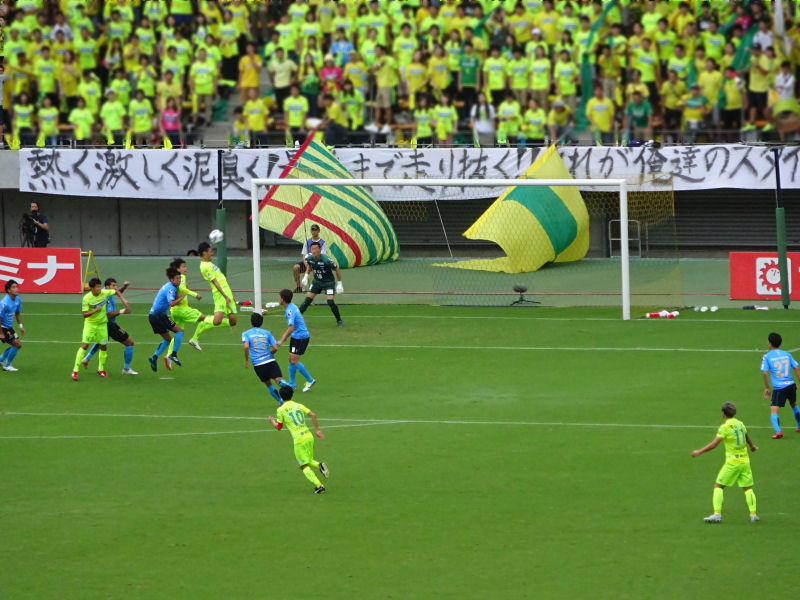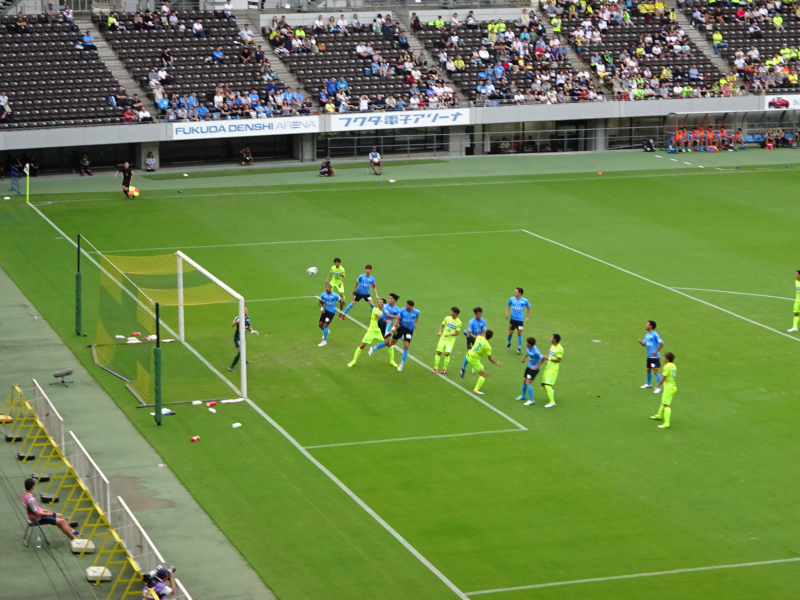 後半15分にはジェフのFK。指宿が頭に当てるがボールは上に外れる。