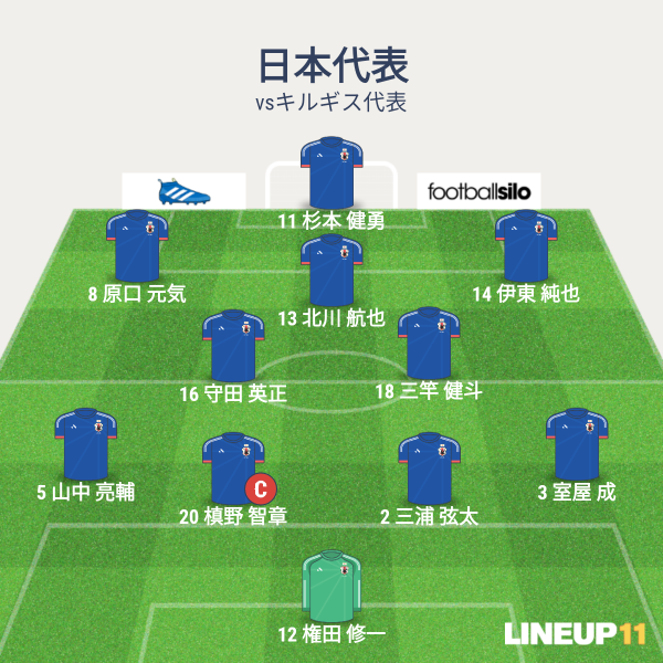 日本の先発は、GKに権田、CBに槙野と三浦、右SBに室屋、左SBに山中、ボランチに三竿と守田、右SHに伊東、左SHに原口、トップ下に北川、トップに杉本という布陣でした。ベネズエラ戦から11人全員を入れ替えてきました。