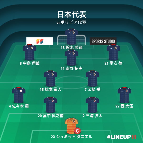 コロンビア戦から11人全員を入れ替えて臨んだボリビア戦。