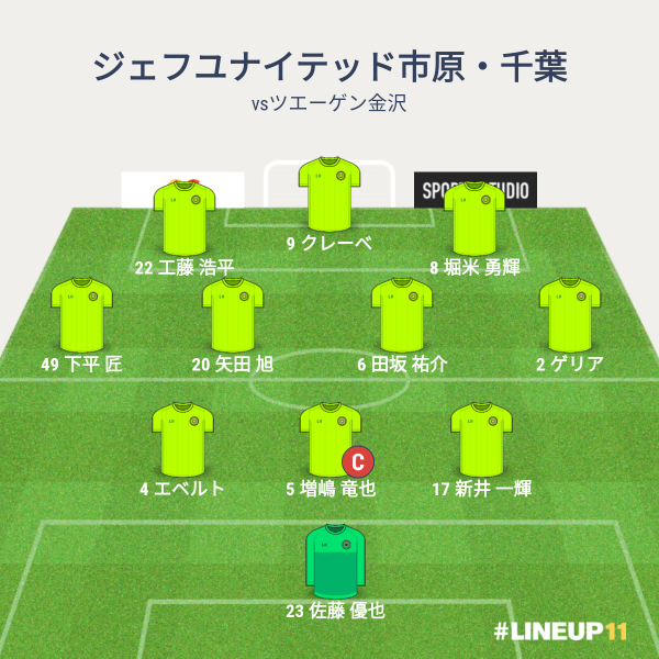ジェフの先発メンバーは、GKに優也、CBに増嶋とエベルトと新井、右WBにゲリア、左WBに下平、ボランチに田坂と矢田、シャドーに工藤と堀米、トップにクレーベという布陣でした。