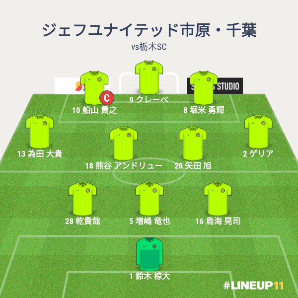 ジェフの先発メンバーは、GKに鈴木、CBに増嶋と鳥海と乾、右WBにゲリア、左WBに為田、ボランチに熊谷と矢田、シャドーに船山と堀込、トップにクレーベという布陣でした。鈴木、鳥海、ゲリアが先発に入りました。