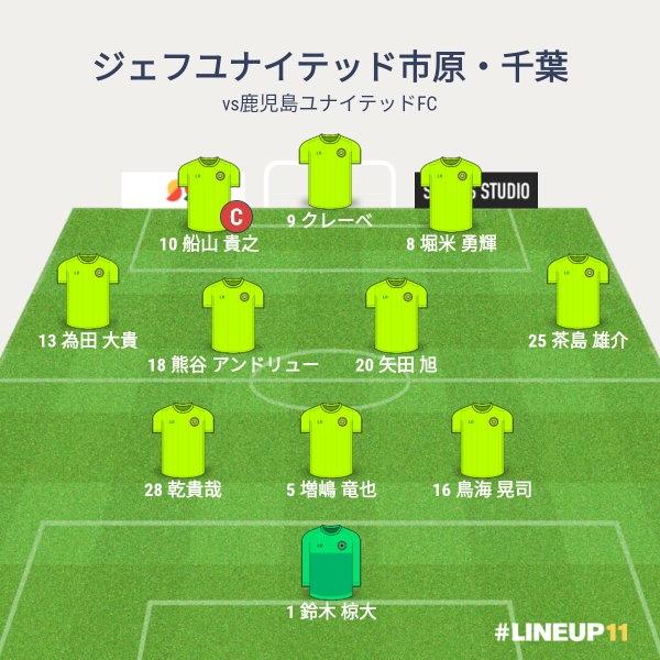 ジェフの先発メンバーは、GKに鈴木、CBに増嶋と鳥海と乾、右WBに茶島、左WBに為田、ボランチに矢田と熊谷、右WGに堀米、左WGに船山、トップにクレーベとなりました。前節から茶島が先発に復帰しました。