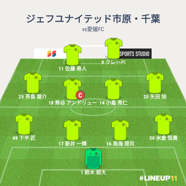 ジェフの先発メンバーは、GKに鈴木、CBに増嶋と鳥海、右SBに米倉、左SBに下平、ボランチに熊谷と小島、右SHに工藤、左SHに為田、トップ下に船山、トップにクレーベとなりました。米倉が移籍後初先発です。