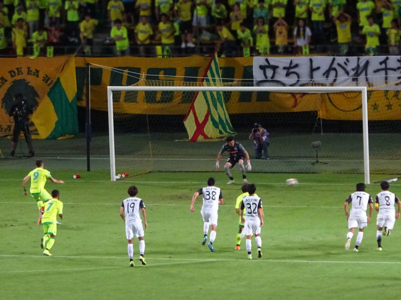 後半13分、米倉のクロスに、クレーベが狙うが相手に倒されてPKの判定となる。このPKをクレーベが落ち着いて決めてジェフが逆転する。