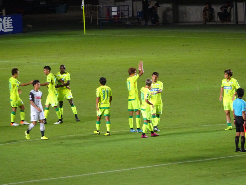 前半27分、下平からのクロスに、クレーベが胸トラップからのバイシクルシュートを狙うが上に外れる。前半29分、為田がカットインからのシュートもポストに当たる。さらに、下平のクロスから茶島が頭で狙うがGKがはじき出す。前半31分、下平のクロスにクレーベが頭で落として茶島が狙うがGKがキャッチする。