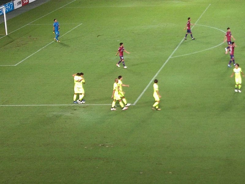 2点目はFKからでしたが、左でボールをつないだところのプレッシャーがほぼ皆無で、安田がフリーでボールを上げられました。川又がつぶれた裏で鳥海が合わせました。鳥海はこれがプロ初ゴールです。
