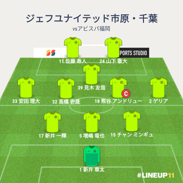 ジェフの先発メンバーは、GKに新井章太、CBに新井一輝とチャン、右SBにゲリア、左SBに安田、ボランチに、熊谷と小島、右SHに矢田、左SHに為田、2トップに船山と山下という布陣でした。