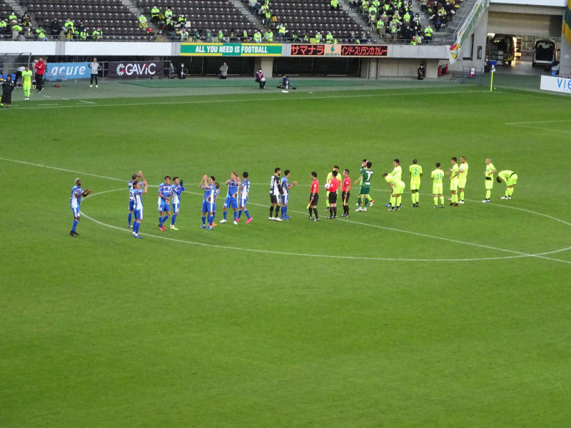 前半11分、クレーベの落としから堀米が拾ってシュートも枠を外れる。前半24分、左からの船山のクロスにクレーベが合わせるがGKが防ぐ。さらに前半25分、ジェフのCK。ニアですらして、こぼれを新井がボーレで合わせるがGKが防ぐ。はねかえりをクレーベがバイシクルで狙うが枠を外れる。