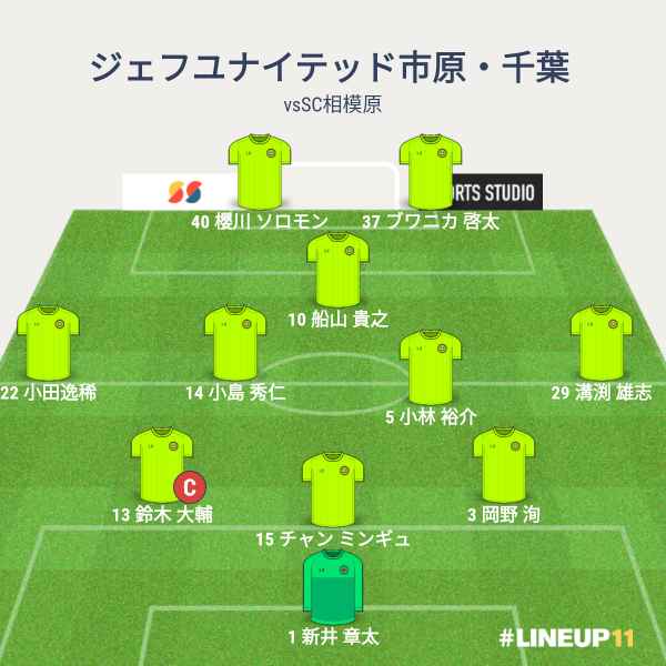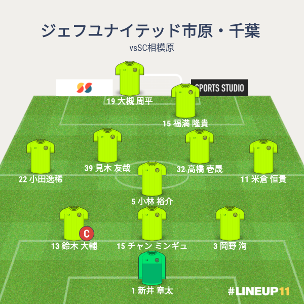 ジェフの先発メンバーは、GKに新井、CBに鈴木大輔とチャンと岡野、右SBに米倉、左SBに小田、アンカーに小林、ISHに壱晟と見木、トップ下に福満、トップに大槻という布陣でした。