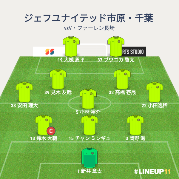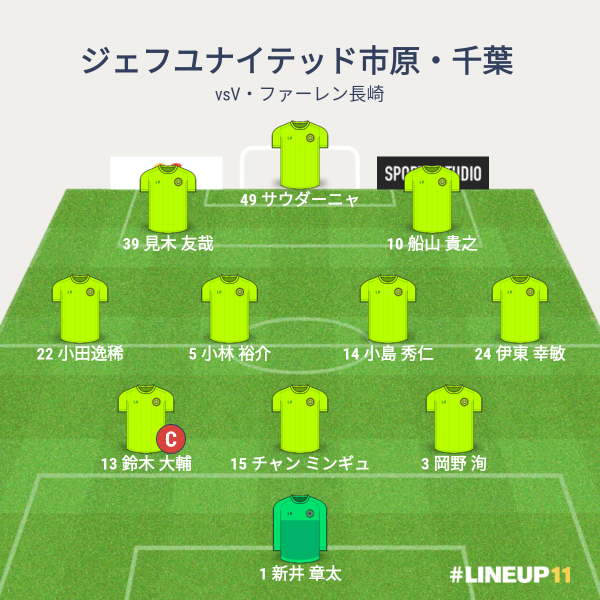 ジェフの先発メンバーは、GKに新井章大、CBに鈴木大輔とチャンと岡野、右SBに伊東、左SBに小田、ダブルボランチに小島と小林、右WGに船山、左WGに見木、トップにサウダーニャという布陣でした。