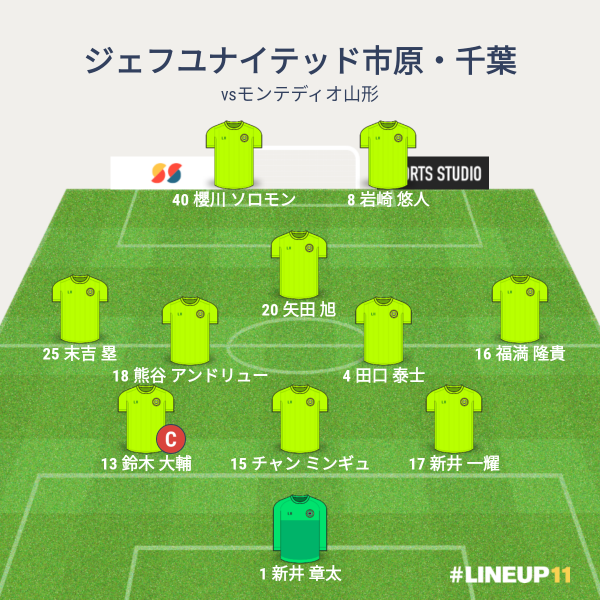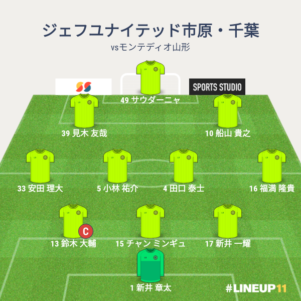 ジェフの先発メンバーは、GKに新井章大、CBに鈴木大輔と新井一輝とチャン、右SBに福満、左SBに安田、ダブルボランチに田口と小林、右WGに矢田、左WGに見木、トップにサウダーニャという布陣でした。