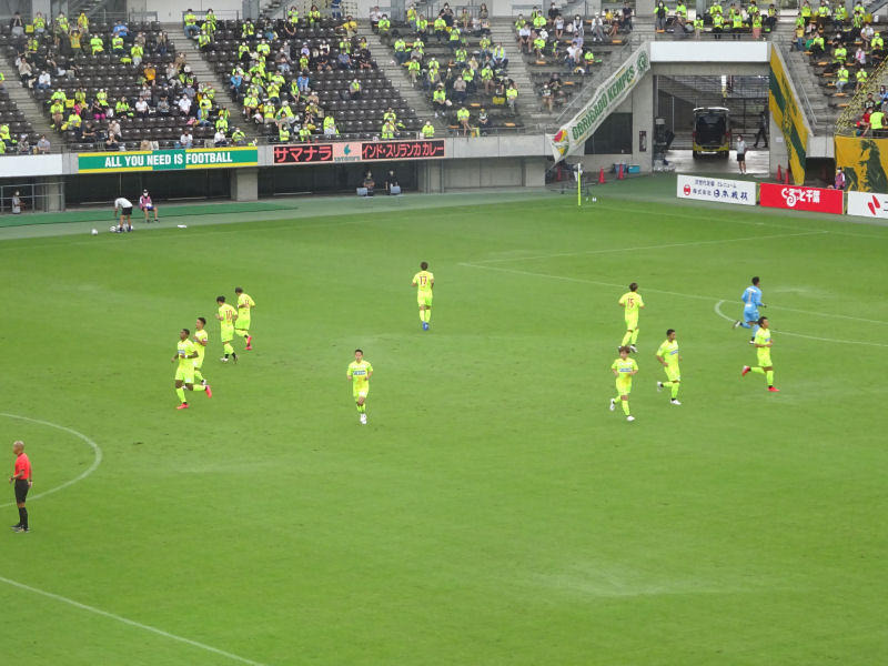 ジェフの先発メンバーは、GKに新井、CBにチャンと新井一輝と壱晟、右SBに福満、左SBに末吉、ダブルボランチに田口と熊谷、右WGに船山、左WGに見木、トップにソロモンという布陣でした。鈴木が出場停止のCBには、壱晟が入りました。
