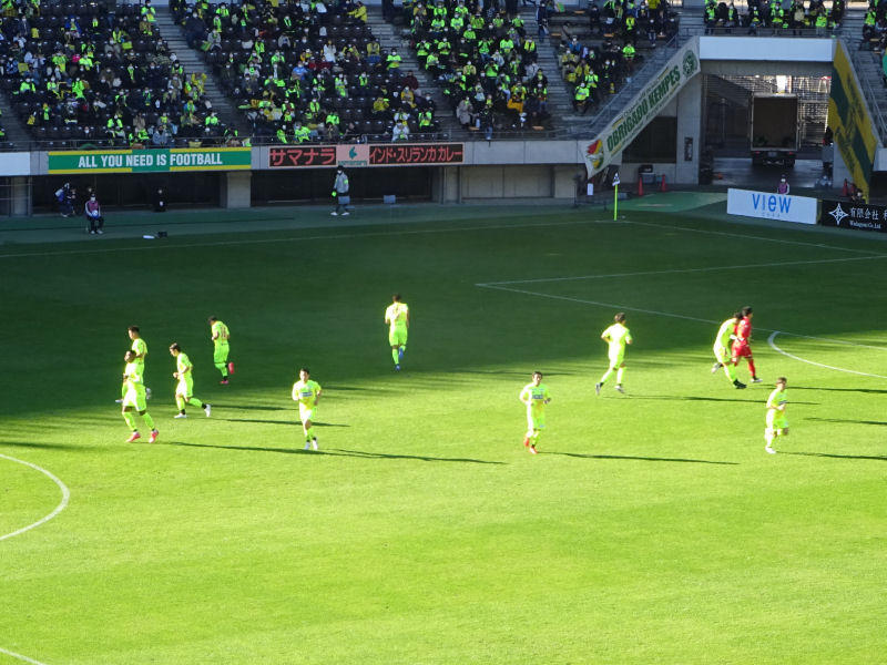 後半9分、スローインからのボールを受けた見木がミドルシュート。ワンタッチあって、枠を外れる。後半14分、ジェフのFK。新井一輝が頭で落とすがシュートには持ち込めず。