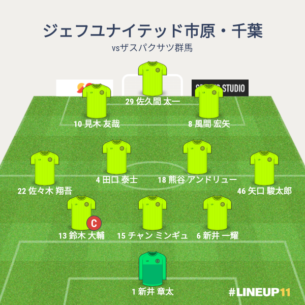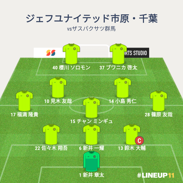 ジェフの先発メンバーは、GKに新井、CBに鈴木と新井一輝と佐々木、右SBに西久保、左SBに福満、アンカーにチャン、インサイドハーフに、小島と見木、2トップに、ソロモンとブワニカという布陣でした。