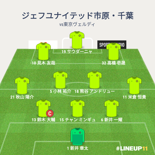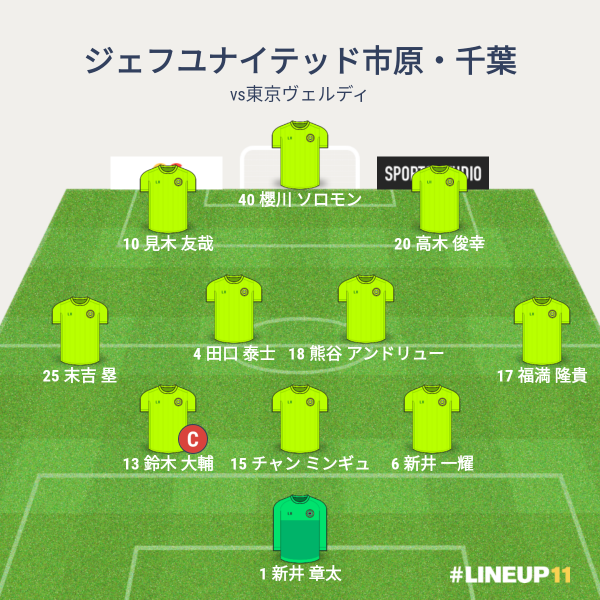 ジェフの先発メンバーは、GKに新井、CBに鈴木と新井一輝とチャン、右WBに福満、左WBに末吉、ボランチに田口と熊谷、シャドーに見木と高木、1トップにソロモンという布陣でした。末吉とソロモンが先発起用となりました。