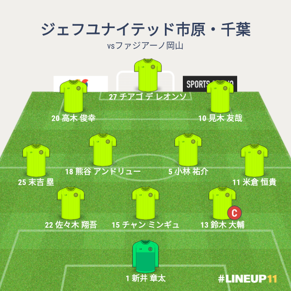 ジェフの先発メンバーは、GKに新井、CBに鈴木とチャンと佐々木、右WBに米倉、左WBに末吉、ボランチに熊谷と小林、シャドーに見木と高木、1トップにチアゴという布陣でした。